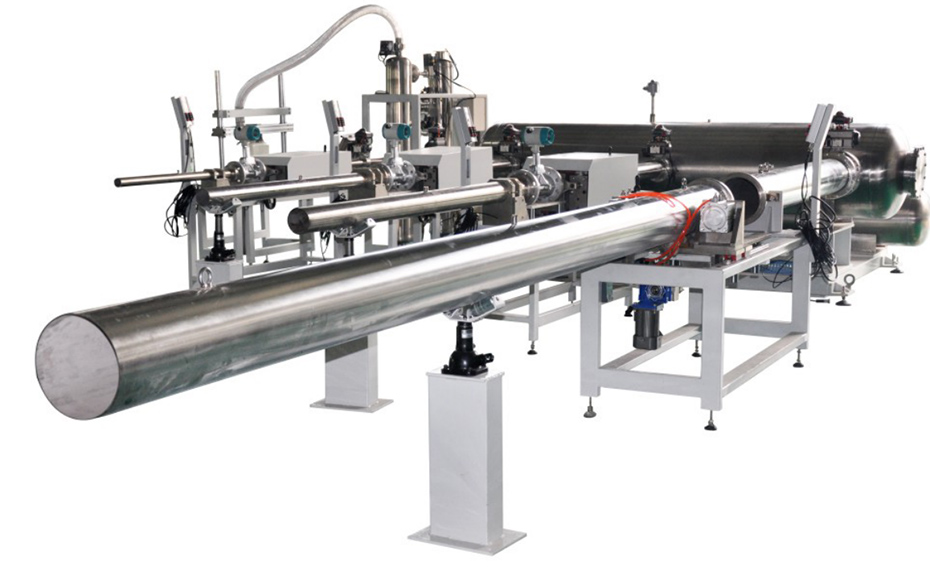 臨界(jiè)流音速噴嘴標定裝置為我公司自主設計(jì)製造,它選用符(fú)合國際標準ISO9300《臨界流文丘裏噴嘴測量氣體流量(liàng)》的(de)臨界流文丘裏噴嘴作為標準(zhǔn)流(liú)量計,音速噴嘴標定裝置(zhì)采用標準表法進行流量檢定或測試。依據國家速度式、容積式流量計檢定規程,該裝置(zhì)可對渦輪、渦街(jiē)、葉輪(lún)、旋進旋(xuán)渦等速度式流量計和腰輪、工業膜式表等(děng)容(róng)積式流量計的氣(qì)體流量計進行(háng)出廠檢驗和周期檢定。在滿足對不同類型流量(liàng)計進行檢定的(de)前提下,該音速噴嘴標定裝置突出了不(bú)確(què)定度低、範圍度寬、自動化程度高、被檢(jiǎn)儀(yí)表種類多、結(jié)構新穎等特點。可應(yīng)用於石油、化工、城市天然氣行業中的氣體流量(liàng)計的檢(jiǎn)定和測(cè)試,尤其適用於被檢流量計種類繁多、檢定工作麵廣、流量計檢定量大的計量檢(jiǎn)定單位、天然氣公司和大型工礦企業(yè)等。